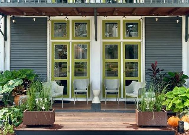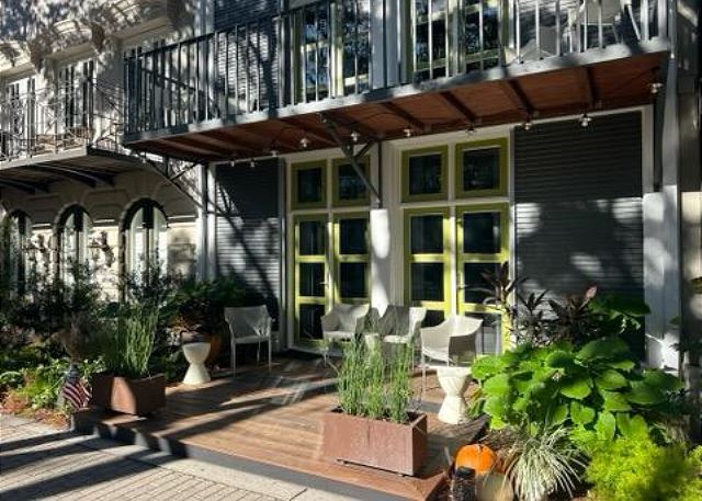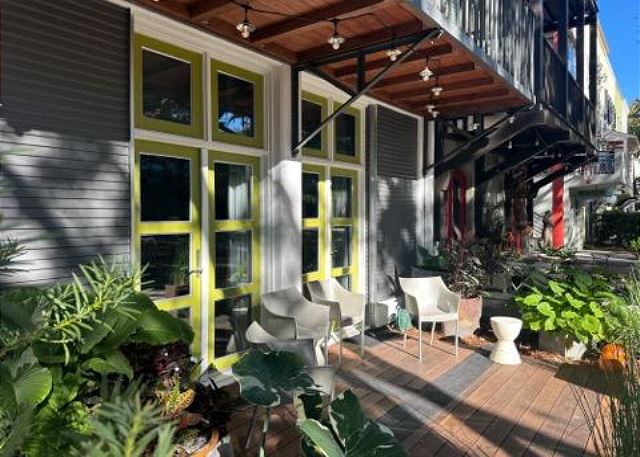 Designed by renowned architect and Seaside Prize recipient Walter Chatham, the historic Forsythe House integrates both modern and industrial elements, combined with unique artistic touches created by the original owners Bill and Mary Florence Forsythe as well as other local artists. The Forsythe House was the first townhome built in Ruskin Place, 'Artists Colony' – Seaside’s enclave of artists workshops, galleries and residences located immediately north of Seaside Central Square. This beautiful park is the site of frequent musical performances and art festivals, which can be enjoyed from your front porch!