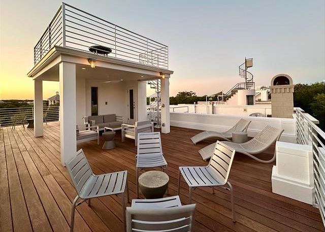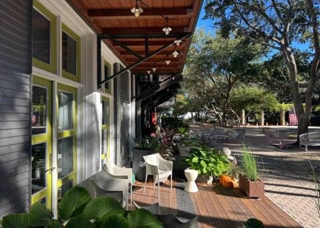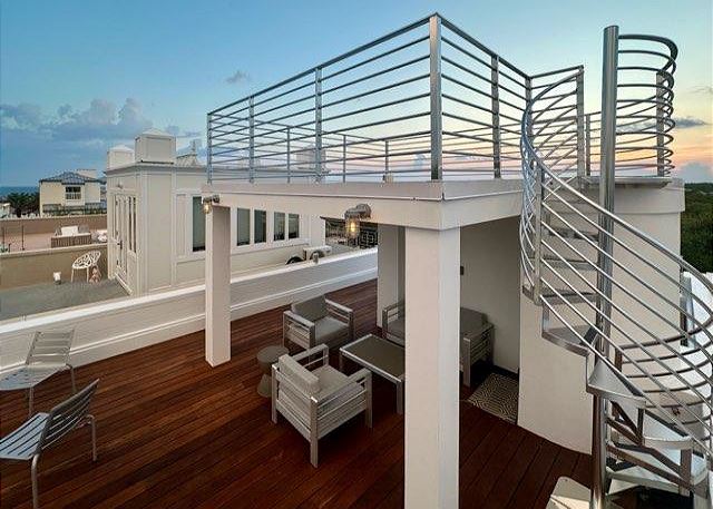 -Multi-level rooftop decks with panoramic views! Overlooking the charming Seaside Ruskin Park 'Art District' in one direction, and breathtaking gulf sunsets on the other!