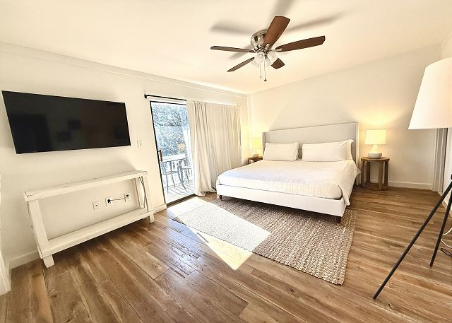 Bedroom 1: King bed, Flat Screen TV, ensuite bathroom, private balcony